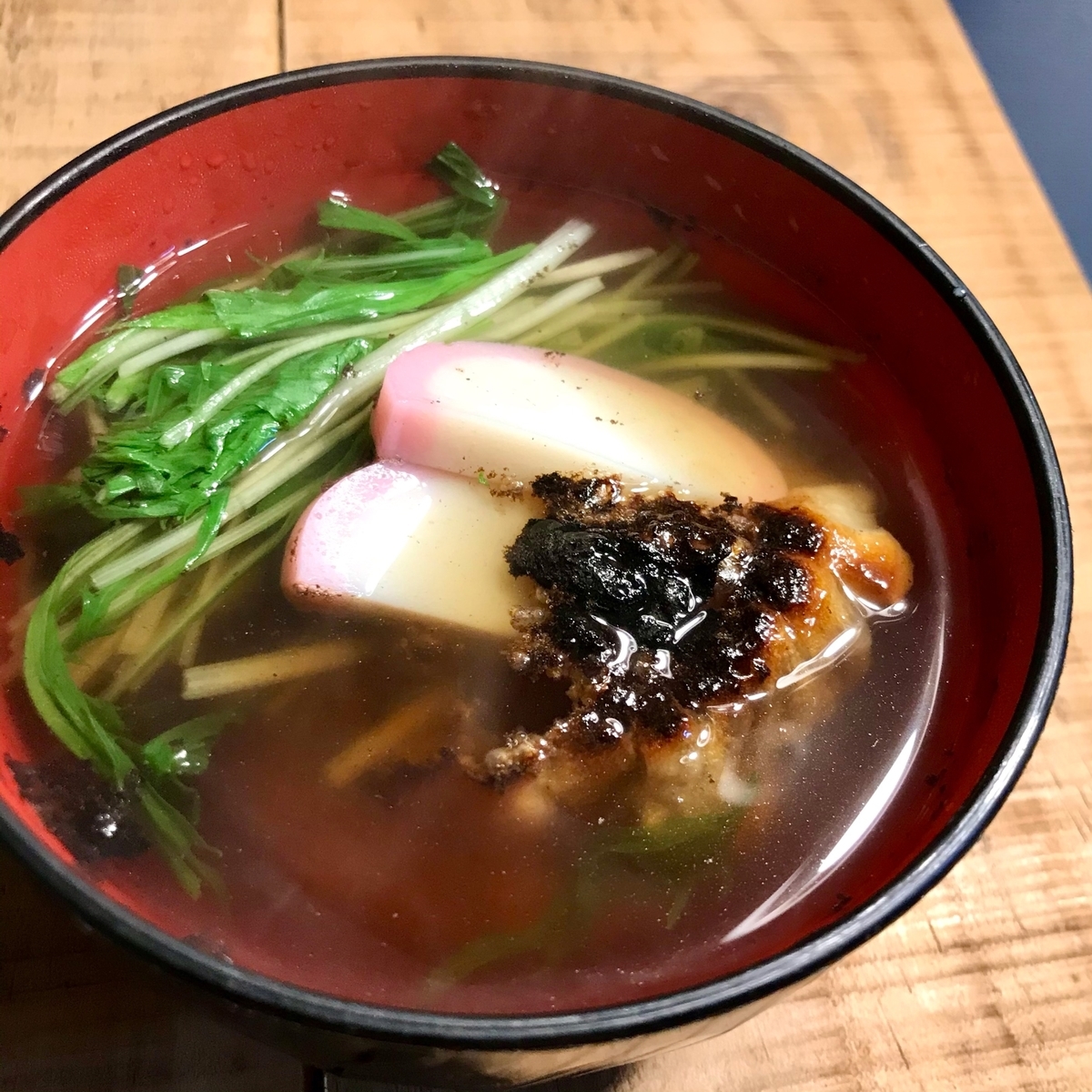 お正月に!京料亭白だしで簡単◎すまし汁に焼いた角餅のお雑煮。