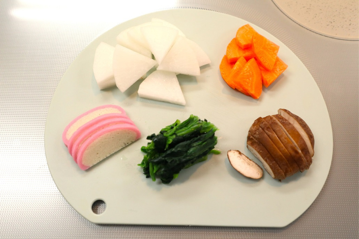 簡単介護食アレンジレシピ 関東風おすまし汁ベースのお雑煮。