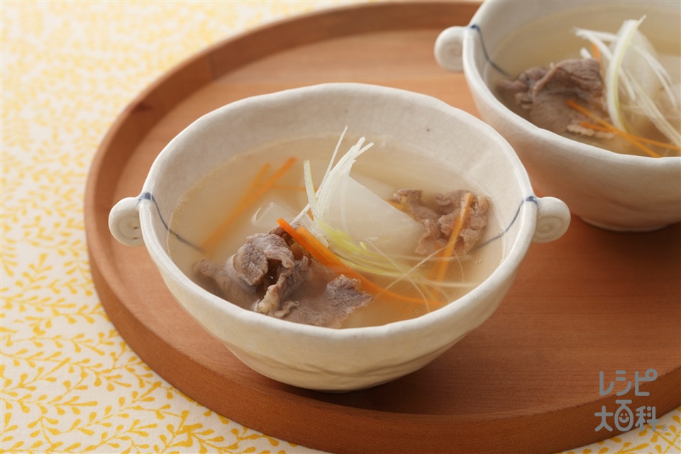 牛肉と大根のオニオンコンソメスープInspirecipeいんすぴれしぴ~J吉の簡単でおいしい創作レシピ~。