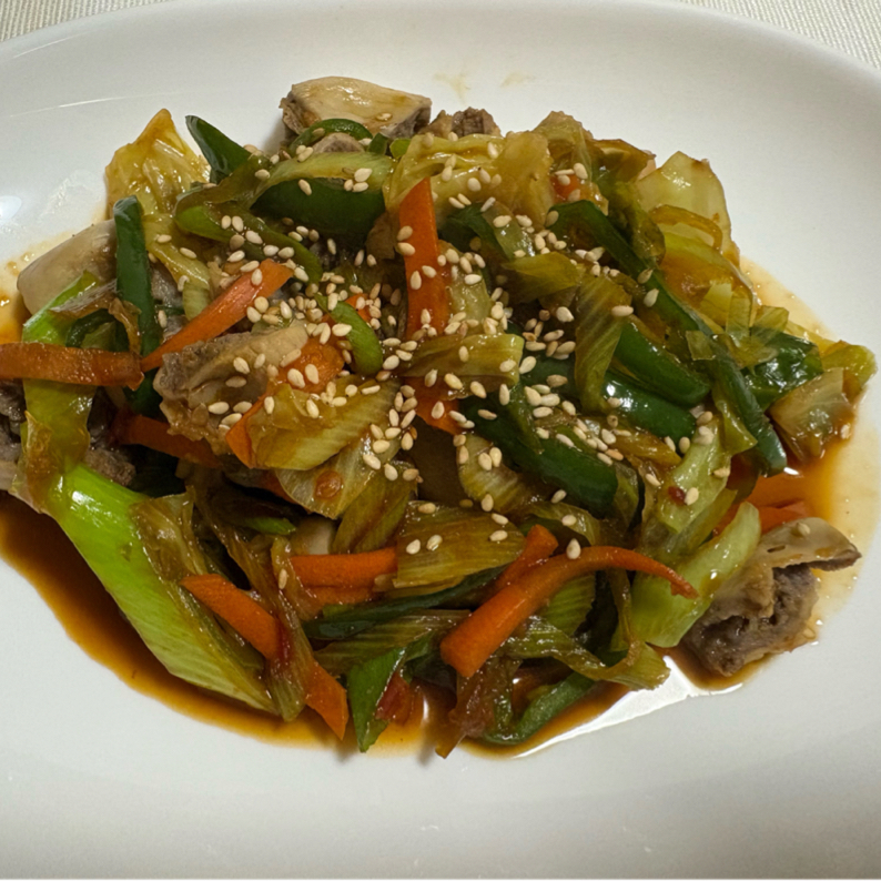 簡単!ホルモンキャベツの辛味噌炒め♡。