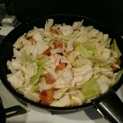 既製品の豚ホルモンにキャベツと一緒に炒めました。隠し味にラー油と一味を少々。炒めただけですが。Facebook。
