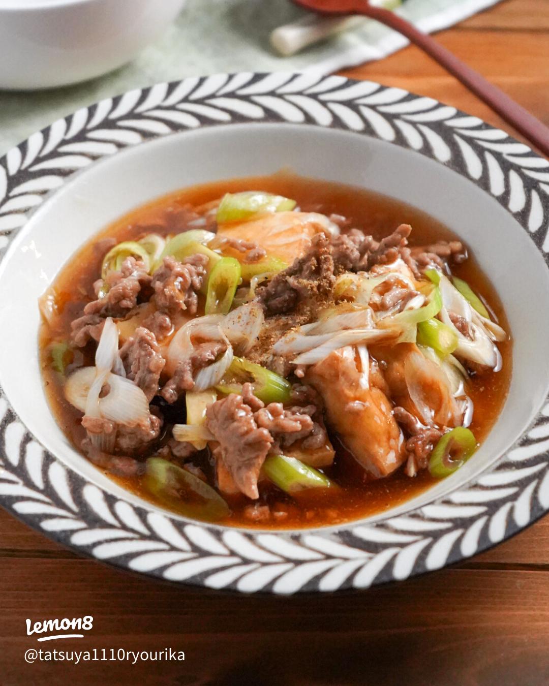 とろ〜りあったか♡厚揚げと白菜のそぼろあんかけ。