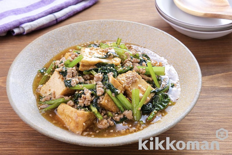 小松菜と厚揚げの和風そぼろあん ご飯との相性抜群。