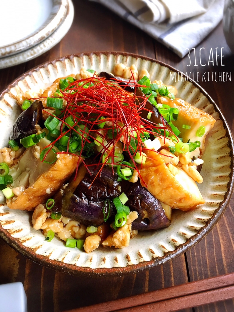 ♡厚揚げde簡単節約♡なすのひき肉あんかけ風♡ 簡単*時短*節約*生姜*フライパン。