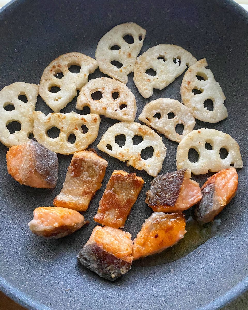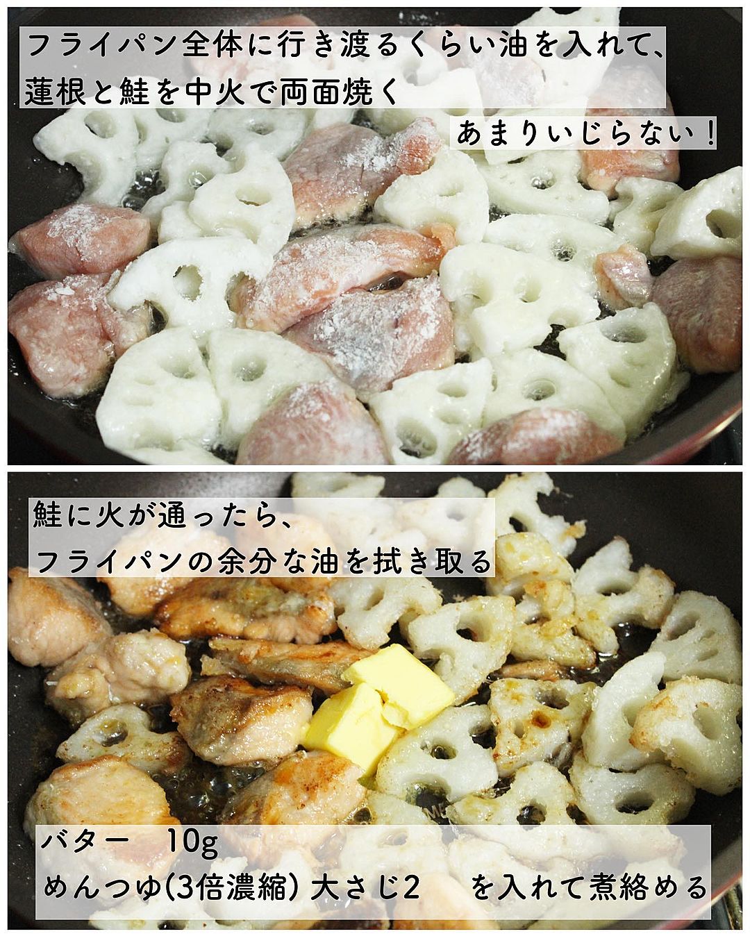 秋鮭とれんこんのめんつゆバター焼きクラシル。