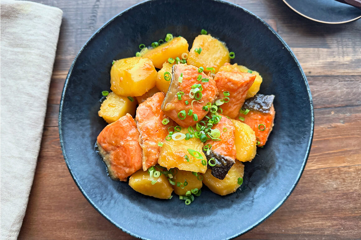 コクうまな味わい! 鮭とねぎのめんつゆバター炒め。