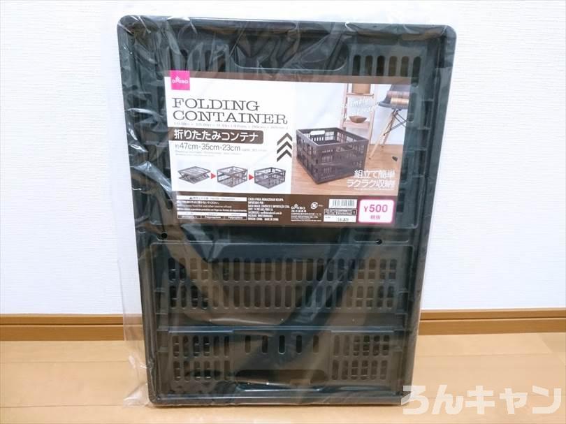 100均「折りたたみコンテナ」の商品情報とサイズ・収納例。ダイソーで販売 4549131869828。