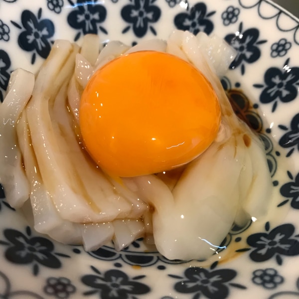 \3分レシピ 卵黄とろり♪イカの生姜醤油和え。
