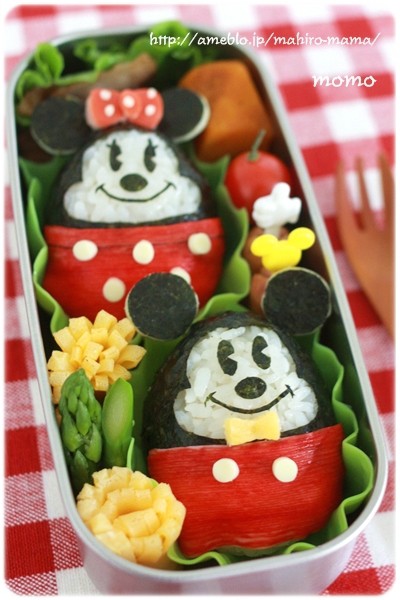 ミッキーお弁当箱とミニーちゃんお弁当のキュートな作り方。