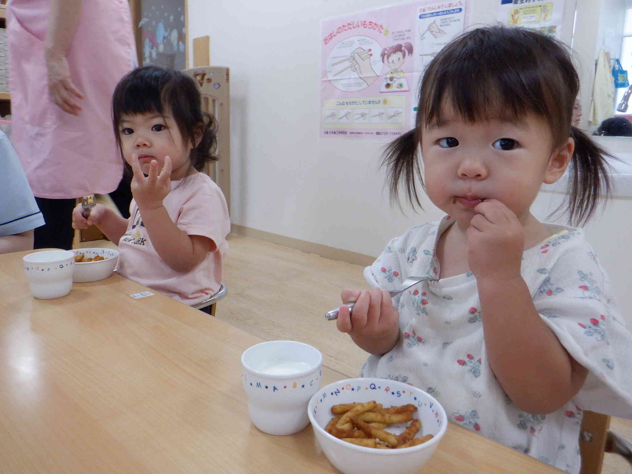 マカロニきなこ、ココア l 小規模保育事業所 ちゅーりっぷの日常 掛川市。