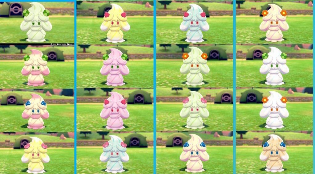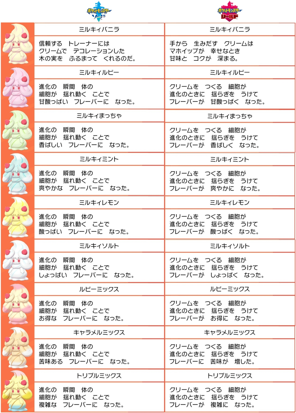 🚄しろみんてぃ🚄 on X: "マホイップが可愛いかったので50色コンプしてみた !😆色違いとアメざいくの色はボックスだと反映されないんですね 🤔 図鑑の文章は剣盾と体の味で18パターンに分かれてるけどミルキィバニラ以外は似たような文章でした 'ω'ルビーミックス。