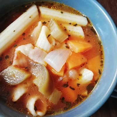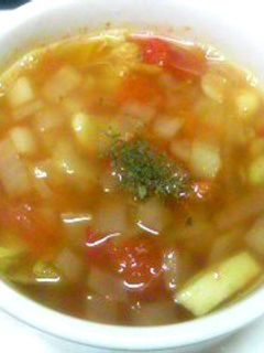 ミネストローネ風コロコロ野菜のコンソメスープ。