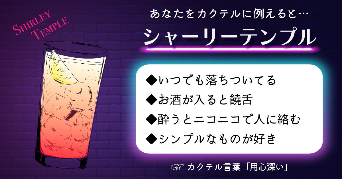 あなたをカクテルに例えると シャーリーテンプル でした!ホイミ。