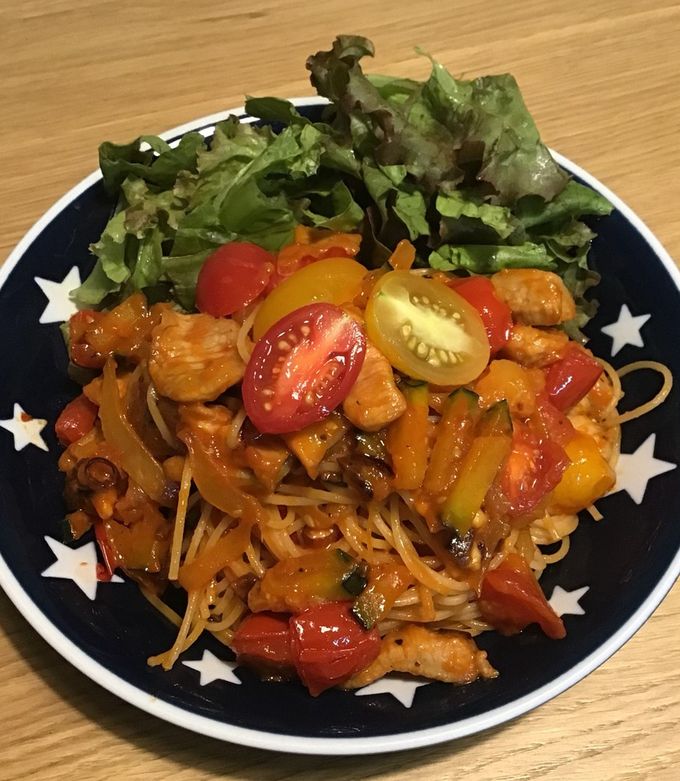 大人と子供のパスタの作り分け方 豚トロと余り野菜のトマトソース- パナゲ×midのいつものカフェ。