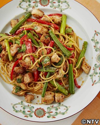 もこみち流 豚トロの和風ピリ辛パスタMOCO'SキッチンZIP。