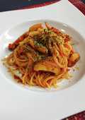 とろとろ揚げナスと豚トロのトロトロトマトソース 定番パスタ- パナゲ×midのいつものカフェ。