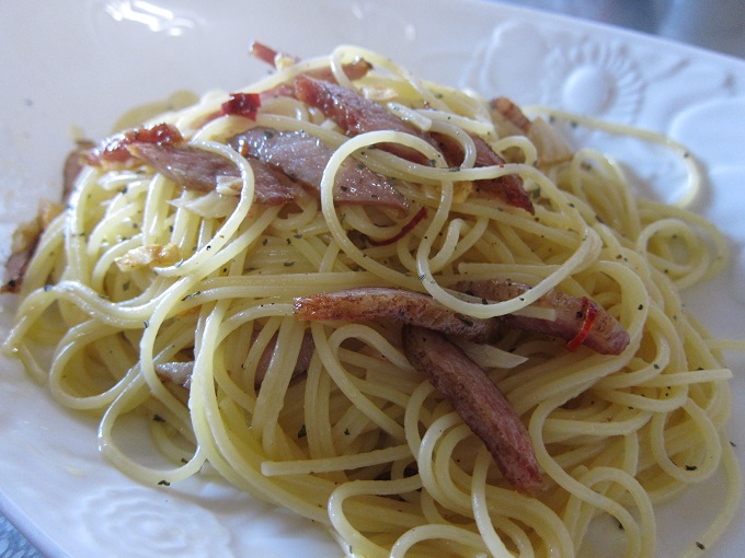 自家製の豚トロの燻製でペペロンチーノを作ってみた!感想と反省点踏み跡。