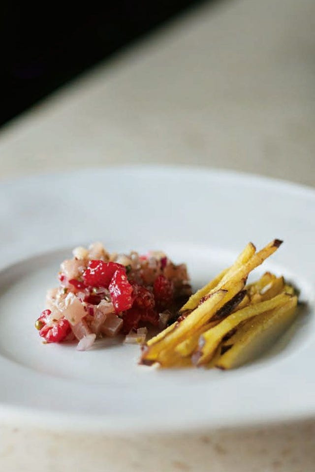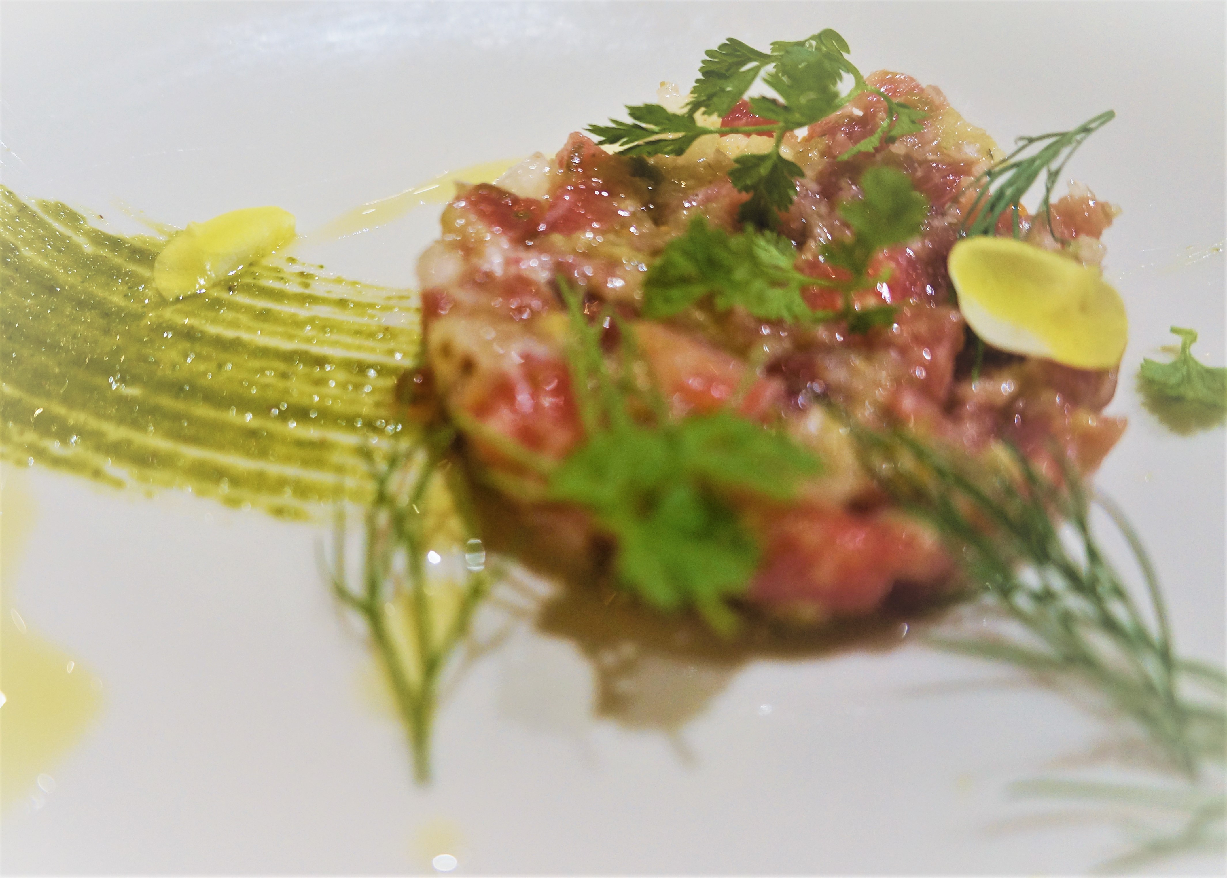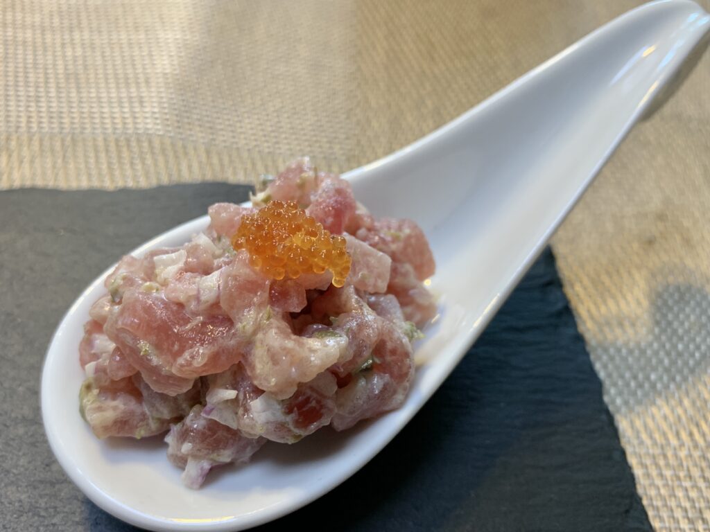 フランス料理 酒井淳の那智勝浦SDGSビン長マグロのタルタル。