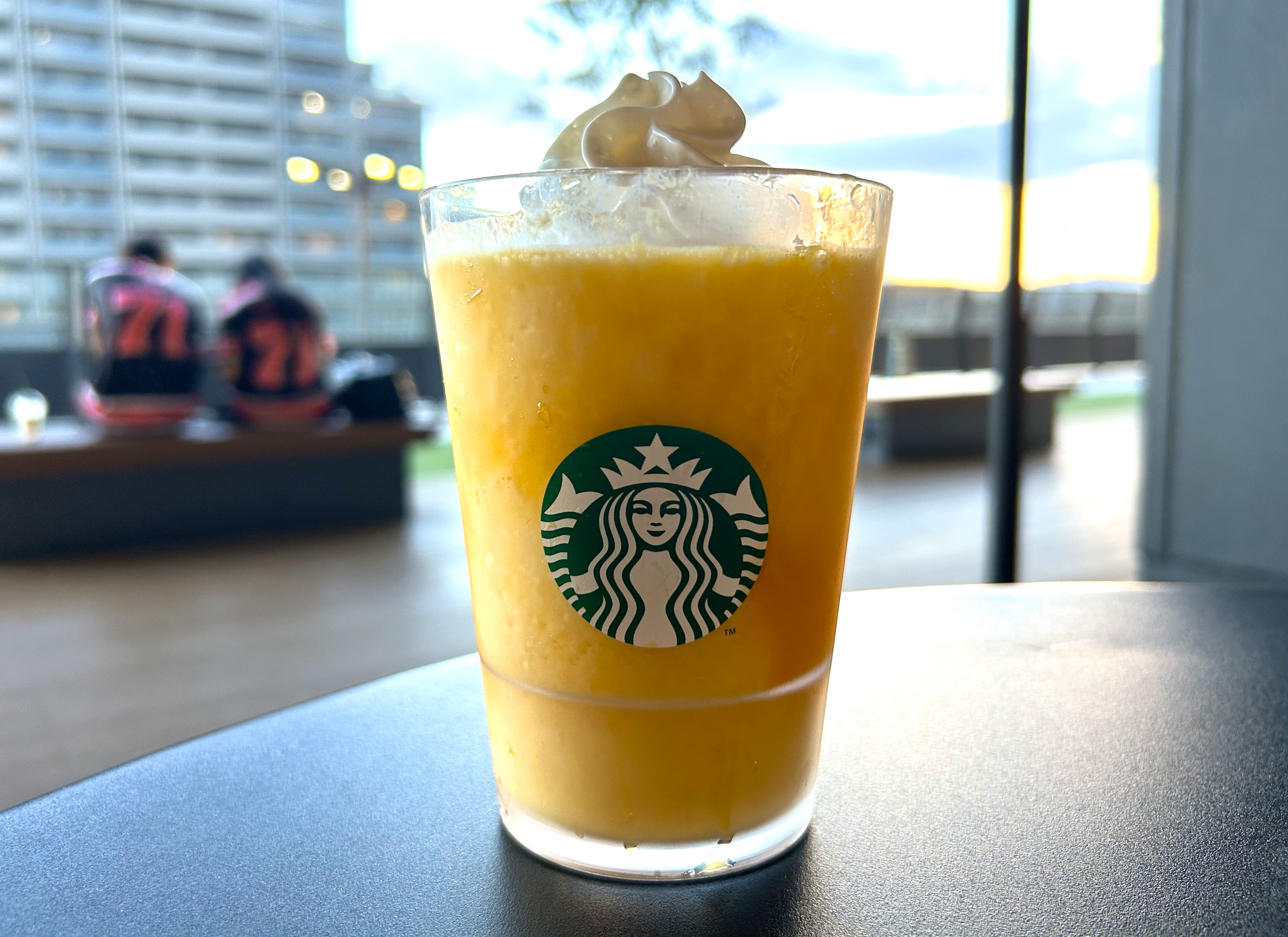 マンゴー&オレンジのフルーツ感がたまらない!スタバから季節のおすすめフラペチーノ®がお目見え! 詳細記事SGS109。