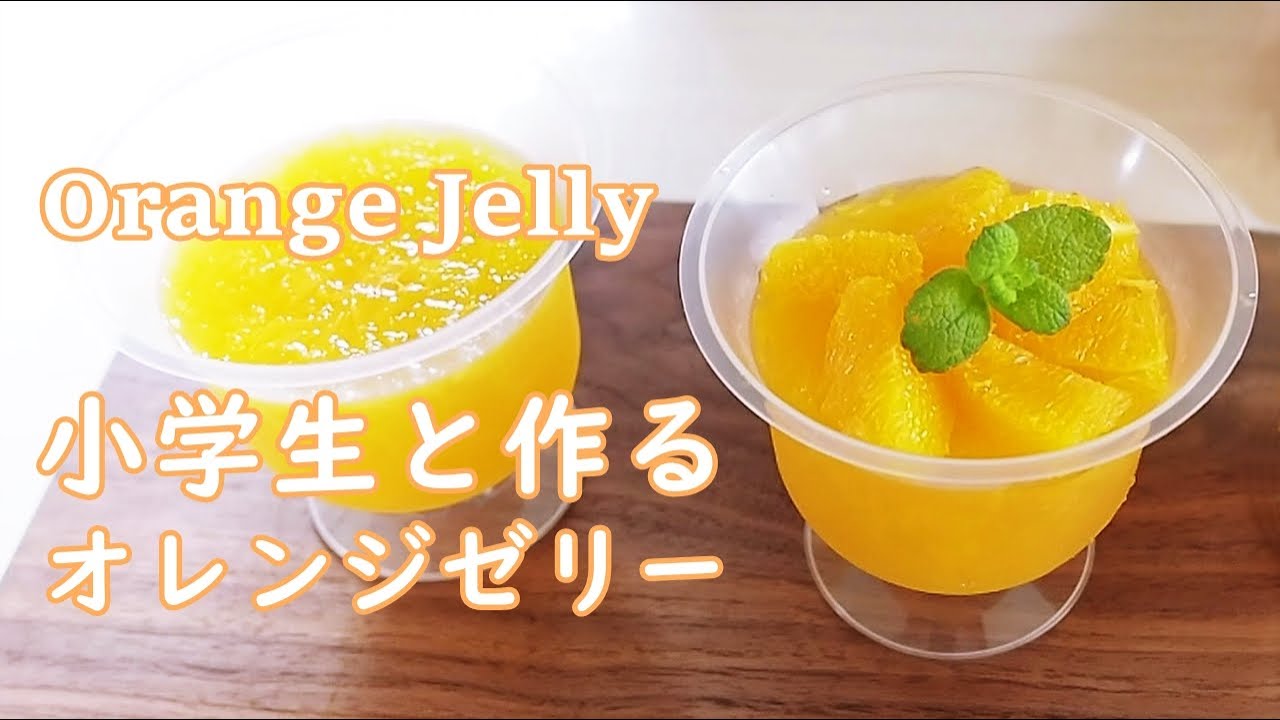 オレンジゼリーの作り方夏休み・子供と一緒にお菓子作りVegetarian recipeHow to make Orange Jellywith child。