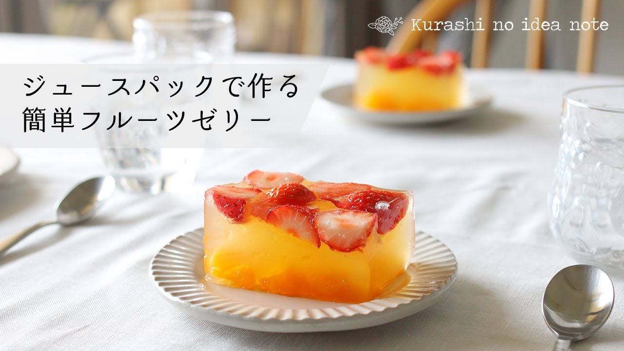 手作りおやつ こどもと作れる!ジュースパックで簡単フルーツゼリー - YouTube。