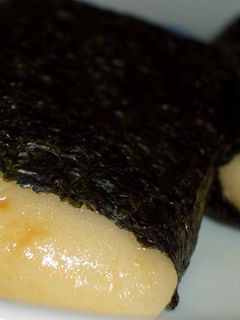 電子レンジで簡単!海苔醤油チーズ米粉おから餅。