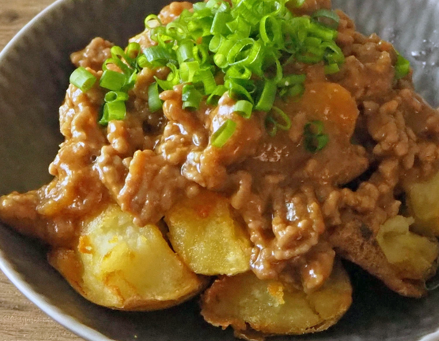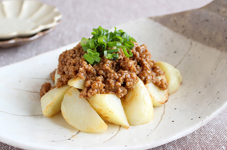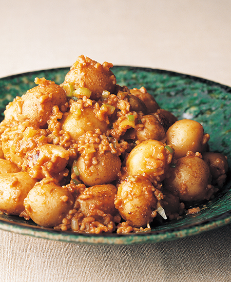 じゃがいもの味噌入りそぼろ煮。