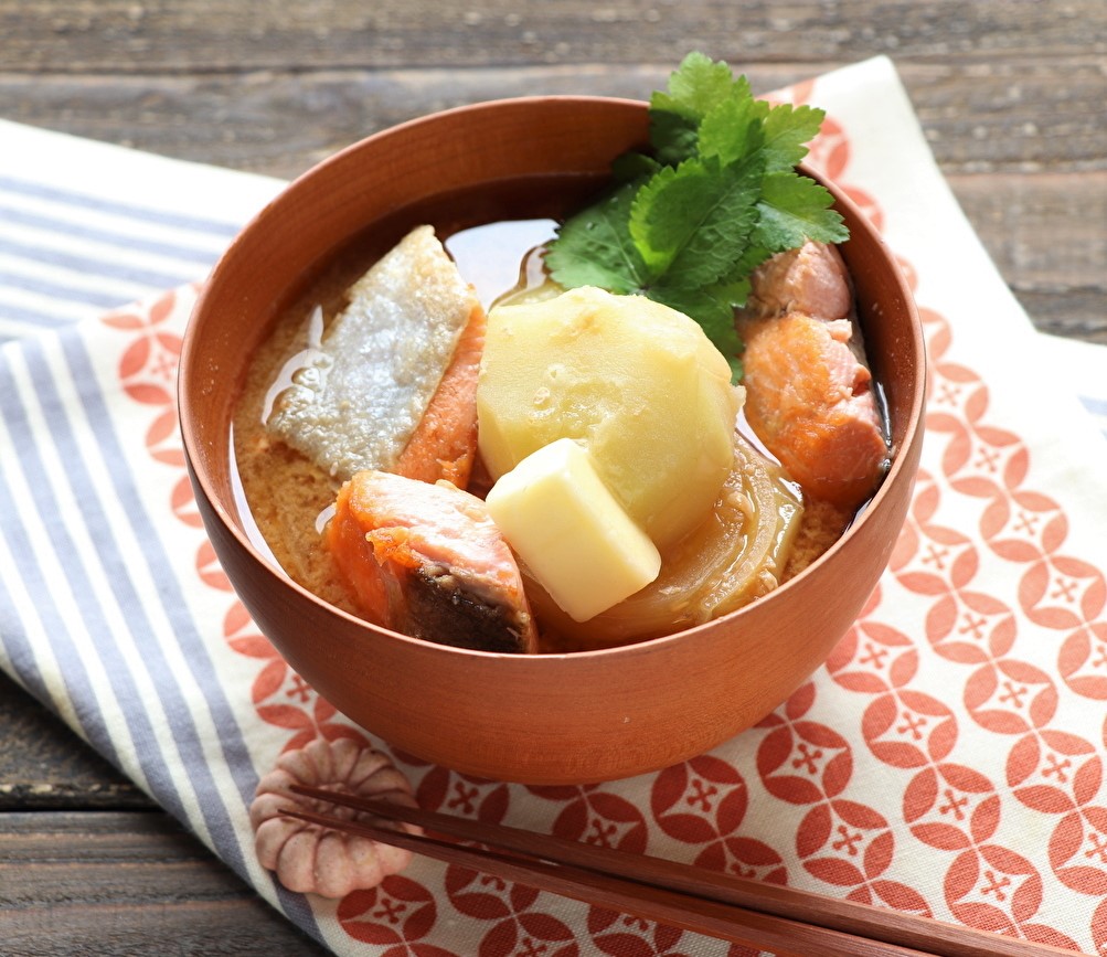 鮭とじゃがいものお味噌汁。