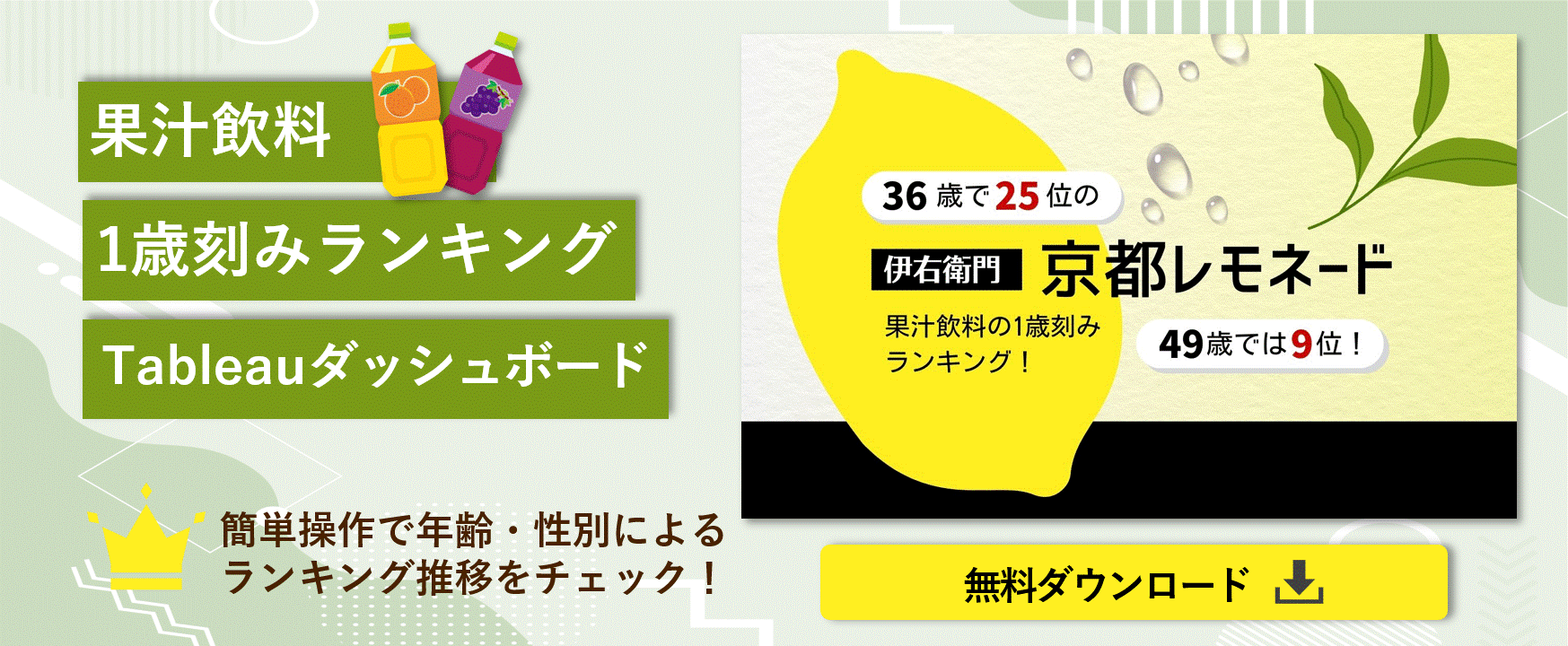 36歳で25位の「伊右衛門 京都レモネード」、49歳では9位!果汁飲料の1歳刻みランキング!CCCMKホールディングス株式会社。