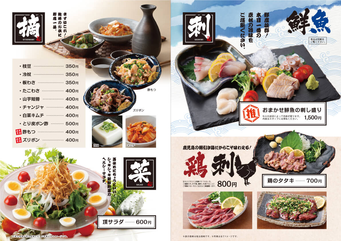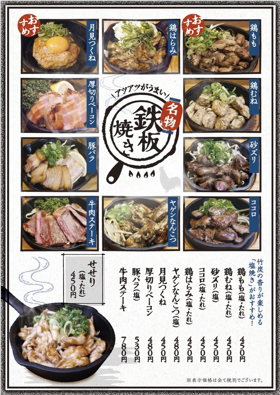 びっくり鉄板&焼鳥「頂」様 メニュー福岡で居酒屋・飲食店のメニュー表デザイン制作は 店舗販促応援隊。