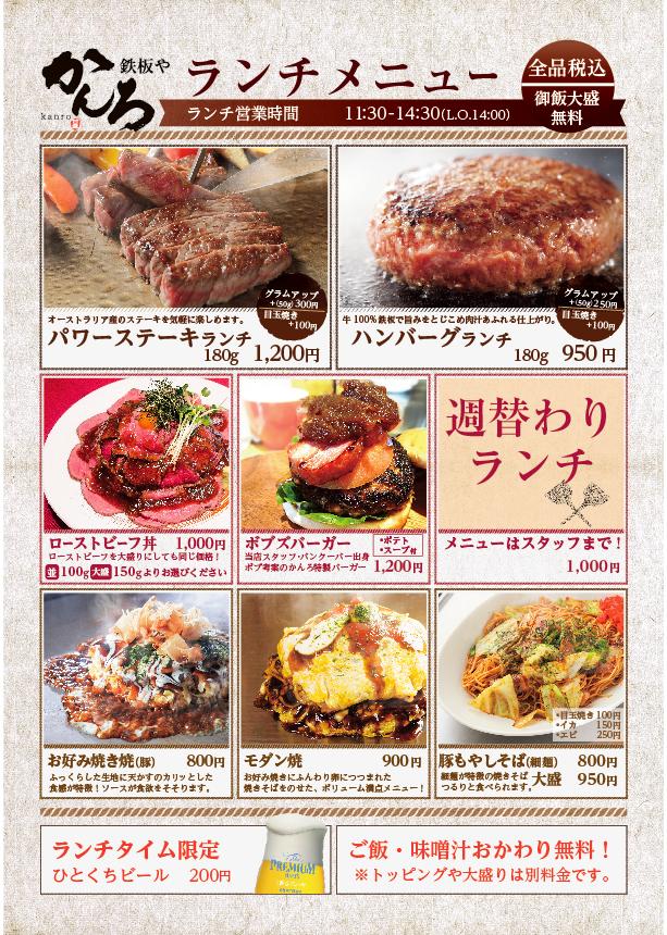 公式 ランチメニューリニューアル最新情報鉄板や かんろ鉄板焼き・肉・ステーキ・お好み焼きをカジュアルにお届け。
