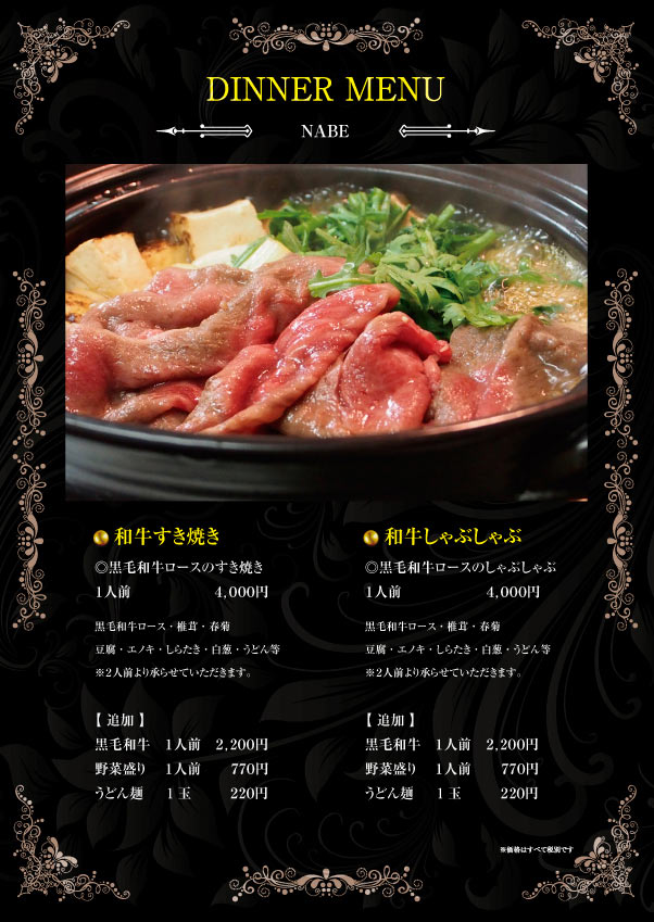 メニュー表 : 鉄板焼 峰 - 宇都宮市五代 鉄板焼き店Yahoo!マップ。