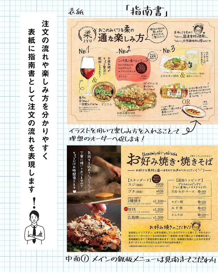 飲食店の開業・リニューアル前に知っておきたい、お好み焼き・鉄板業態のメニューデザイン事例MEDIY。