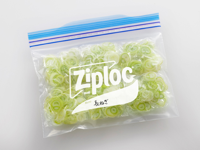 料理時短に!ジップロックで小ネギの冷凍保存。
