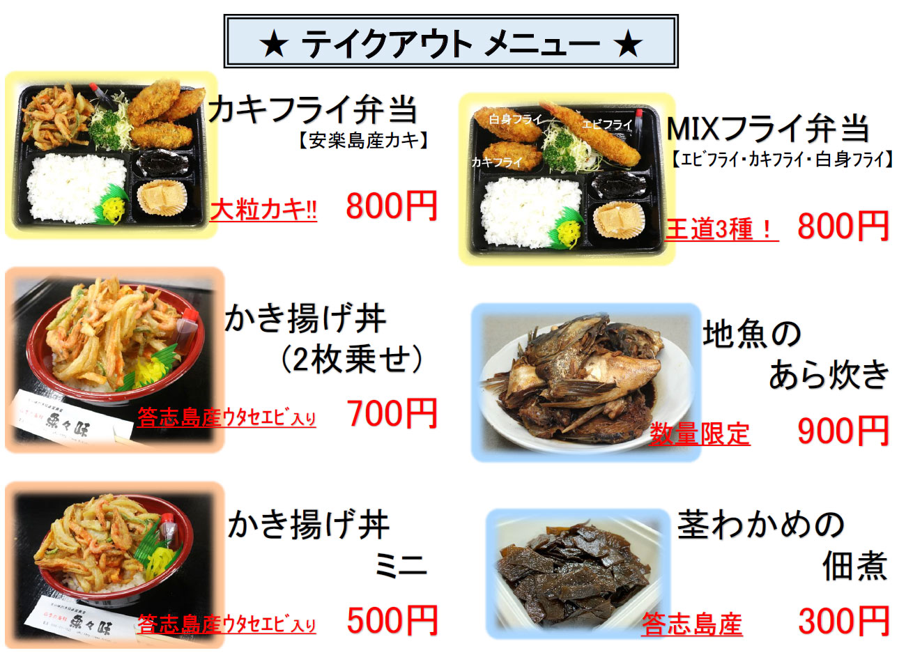 四季の海鮮 魚々味 ととみ 』 テイクアウトメニュ。
