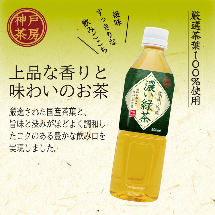 楽天市場 神戸茶房 濃い緑茶 PET 国産茶葉100% 宇治抹茶入り 500ml*24本入神戸茶房: 楽天24。