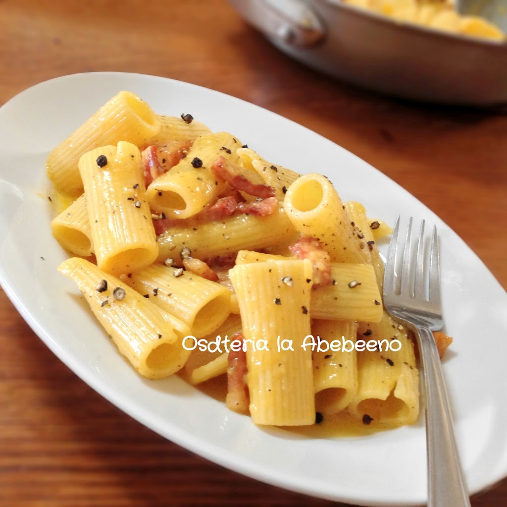 Rigatoni alla Carbonara ローマ風カルボナーラ リガトーニ - Osteria Abebeeno。
