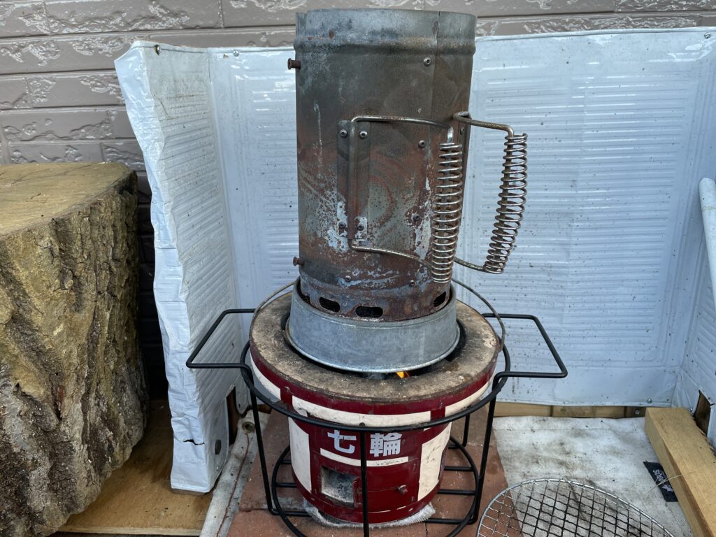 七輪!火つけには煙突効果!七輪マスタ。