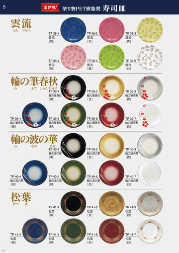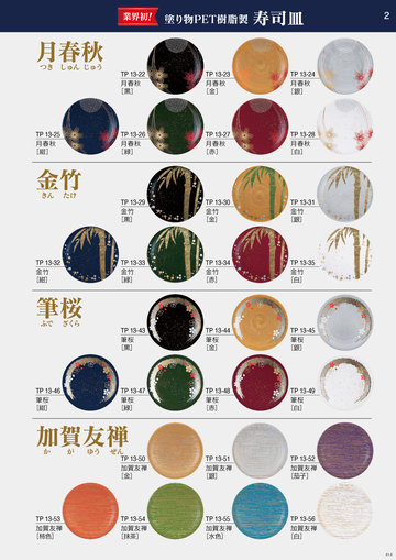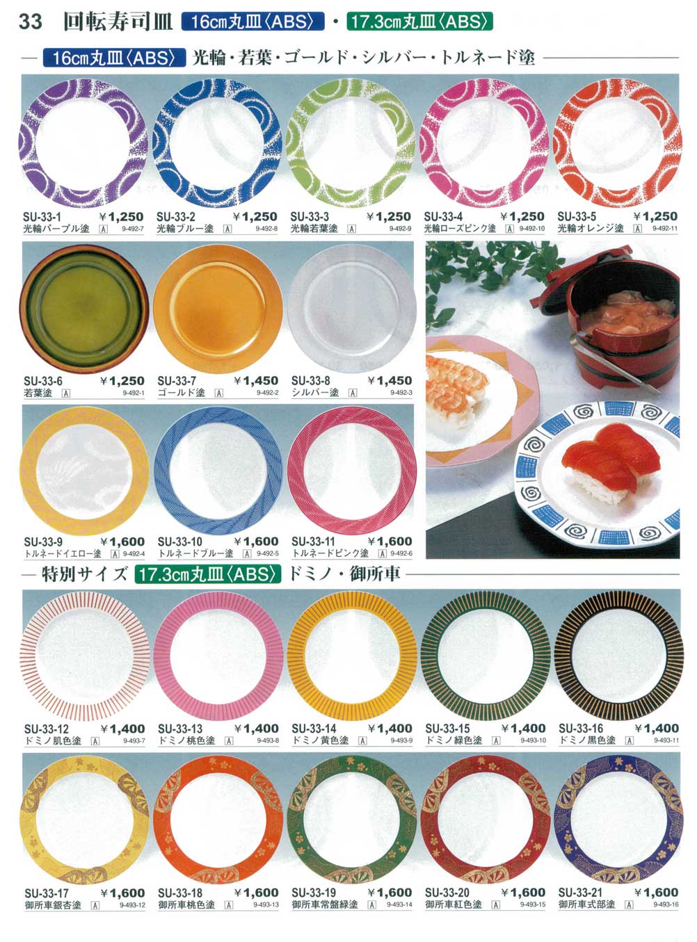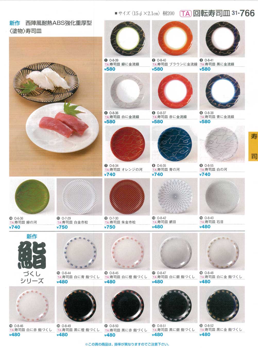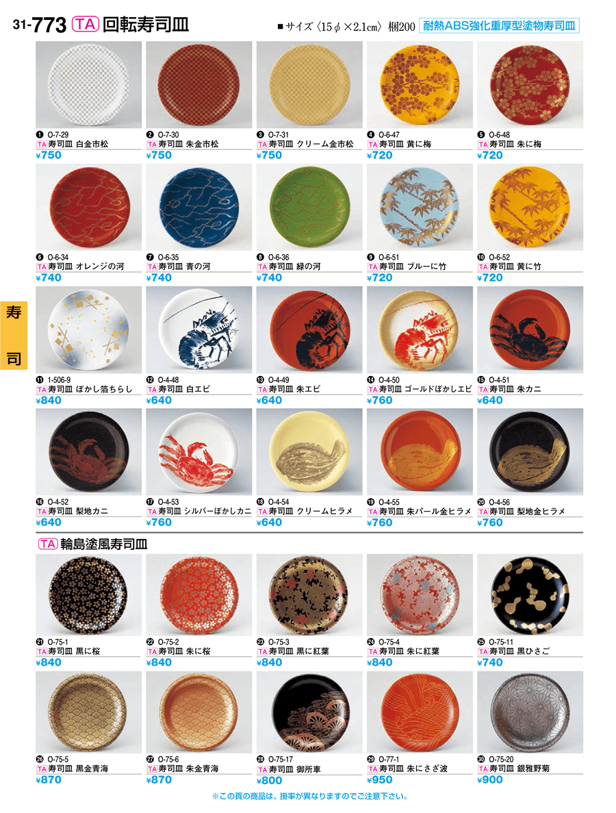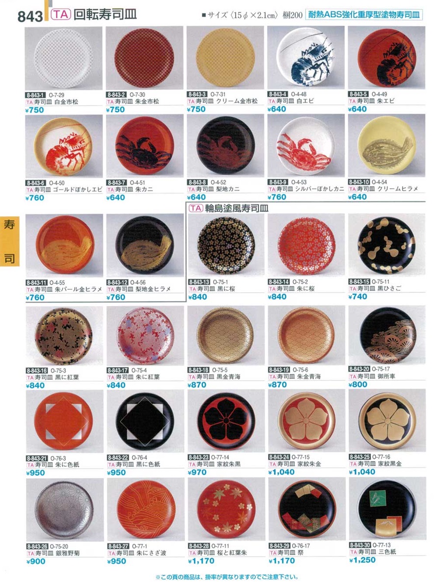 No.ka31-1-507-12寿司皿 15φダイナソワーズ メラミン 掲載ページ-業務用食器カタログ「割烹漆器vol.31」。