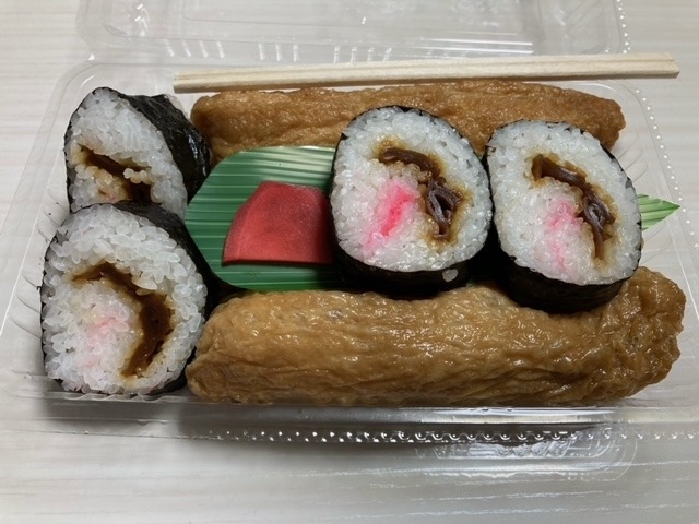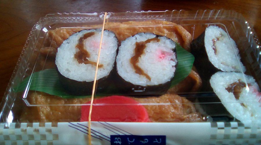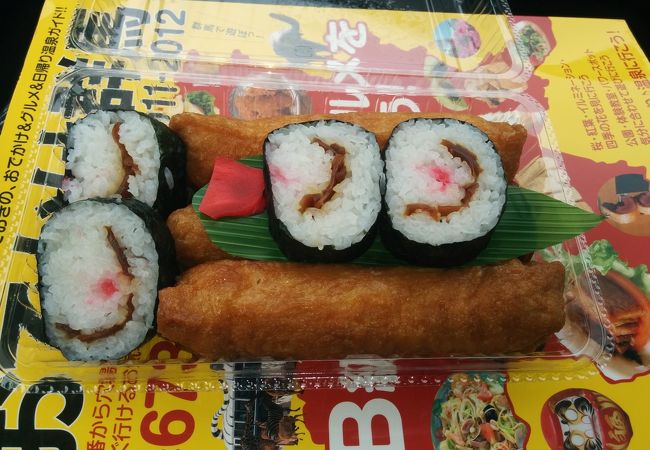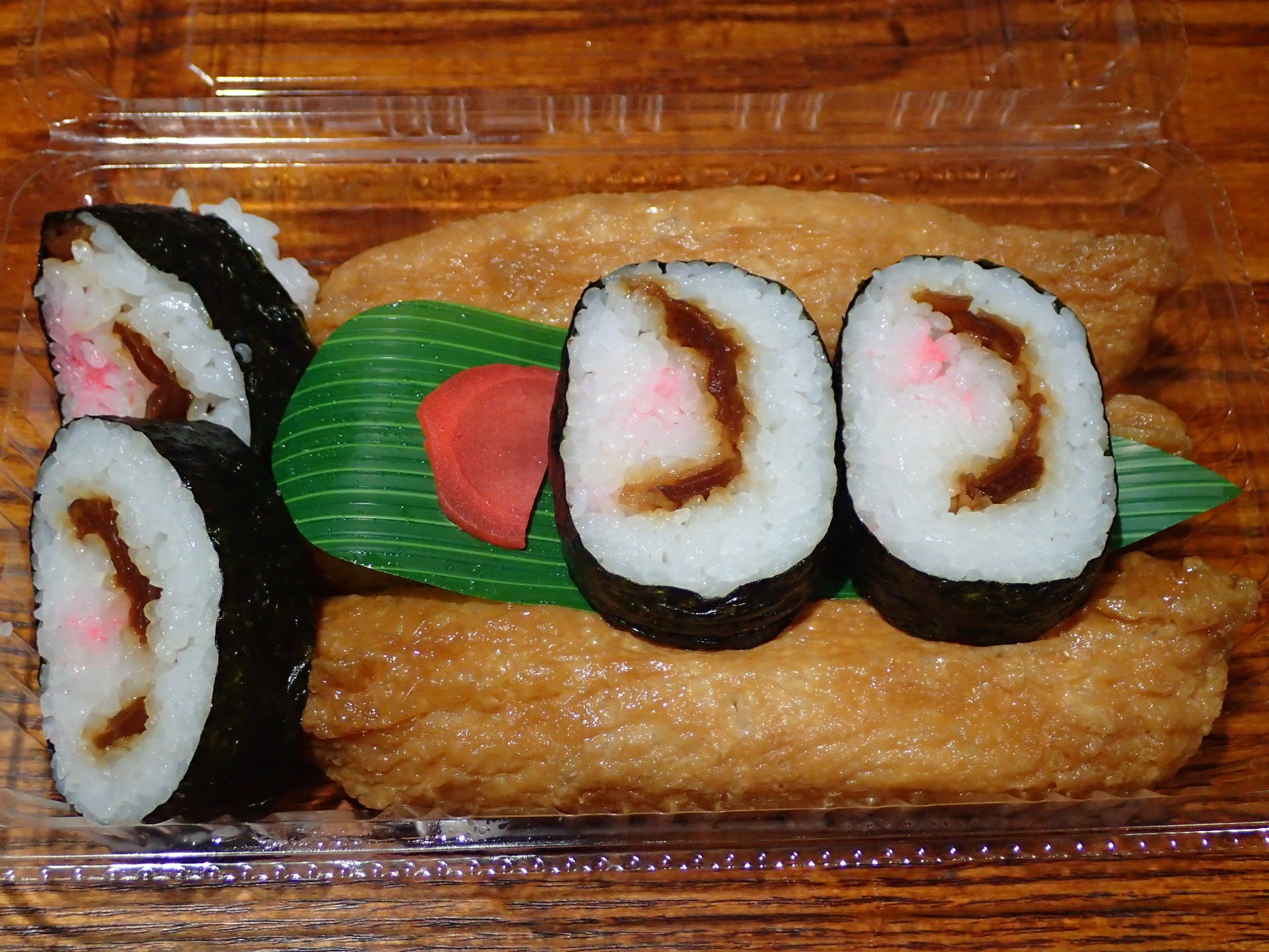妻沼聖天山名物「細長~い稲荷寿司」小林寿司温泉ぱらだいす。