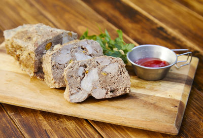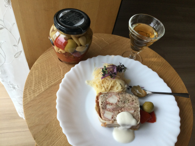 ブランデーヨーグルトソースをかけたパテドカンパーニュ。