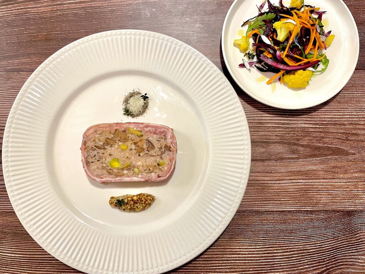 パテ・ド・カンパーニュ京野菜のサラダ添え。