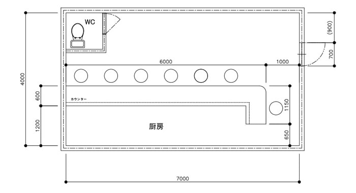 デシャップカウンターと厨房平面図 - 図面屋.com_内装設計・デザインの手引き。