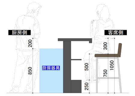 飲食店カウンターの作り方 カウンターと椅子の高さ関係について福岡飲食店内装センタ。