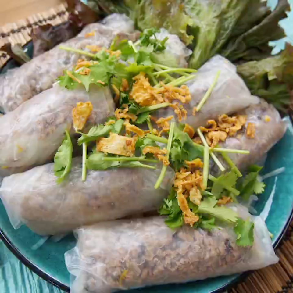 ベトナム料理🇻🇳 蒸し春巻き バインクオン がプルプル♡モチモチでおいしい。