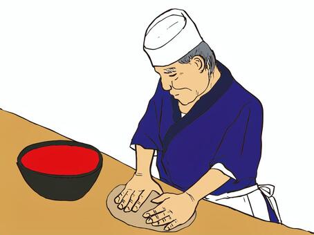 筆絵のそば打ち職人のイラスト無料イラスト素材素材ラボ。
