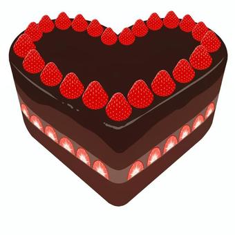 ハート型の誕生日チョコレートケーキイラストのフリー素材イラストイメージ。