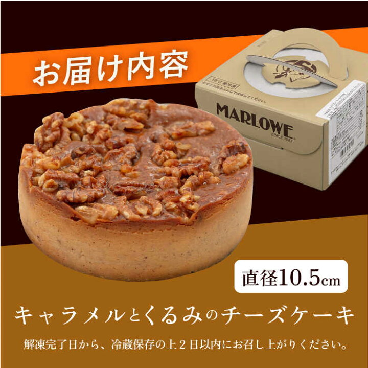 楽天市場ふるさと納税 マーロウ監修 キャラメルとくるみのチーズケーキ 1台 直径 約10.5cm 胡桃 けーき 洋菓子 胡桃 お菓子 濃厚 洋菓子きゃらめる ホールケーキ 横須賀 ファミール製菓株式会社AKCI00110000円 1万円 : 神奈川県横須賀市。