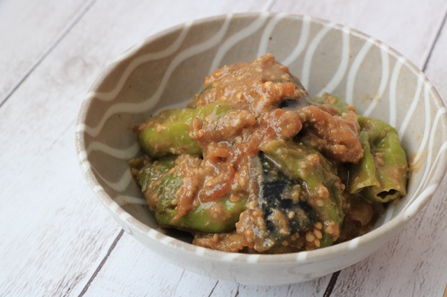 ナスとシシトウの味噌炒めJAみえなか。