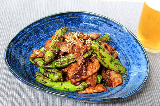豚肉とししとうの味噌炒め。